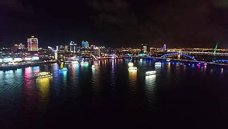 八點55分,在漢江遊船的船隻會開到龍頭做等待,等待晚上九點整的噴火表演