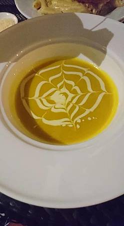 今天的湯是南瓜濃湯,濃湯上還有拉花,不過我喝了一口就推給我老公了,