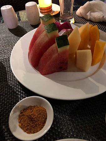 水果都蠻甜的,不過旁邊附上的沾粉居然是辣椒粉,這點很特別!