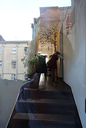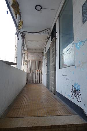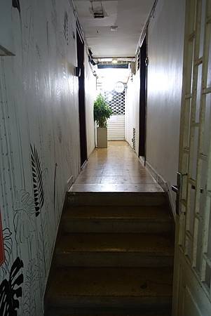 咖啡公寓的上樓入口是在面對建築物的左手邊,
