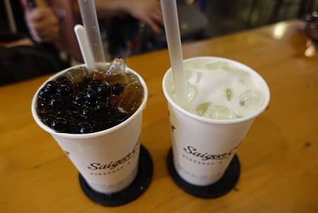 我們點了一個珍珠桃子茶、抹茶拿鐵