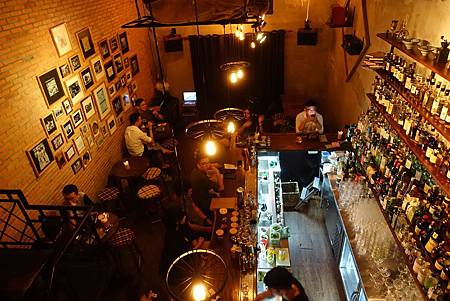 一樓中央是吧台,週圍零零散散有些座位,後方跟樓中樓夾層才有容納比較多人的大桌