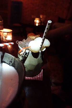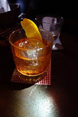大大的冰磚很清透很美,不過即使上頭放上果乾,威士忌喝起來還是很烈,
