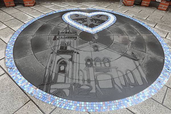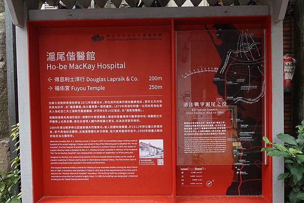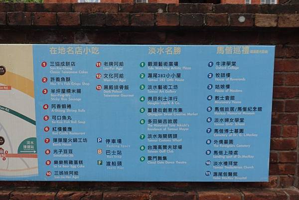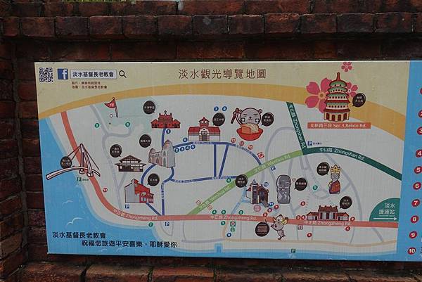 淡水教會的牆外也掛著淡水觀光導覽地圖
