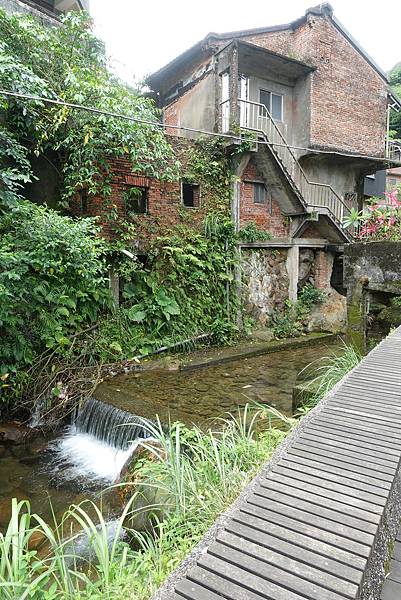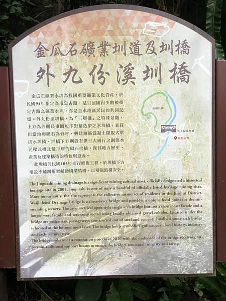 三層橋橫跨於外九份溪上,最上層是運水的水圳橋,中層則為目前行人行走的水泥橋,