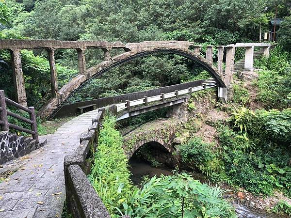 最下層則是日治時期人行走的石砌拱橋,三座造型相異且年代不同的橋梁上下相疊,實在是非常特殊的景象!