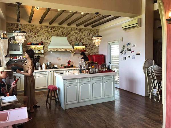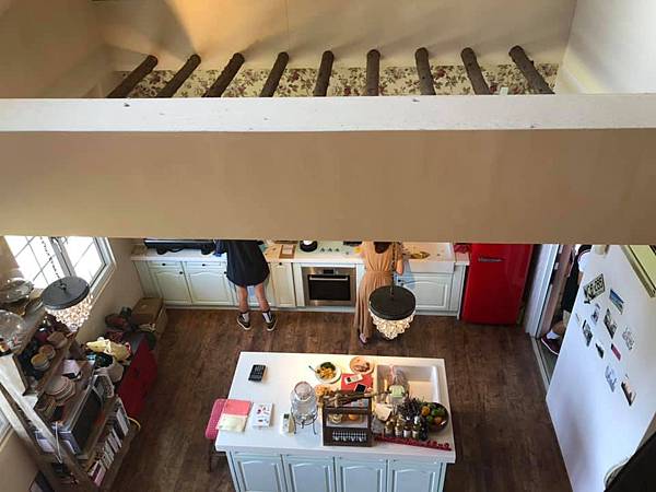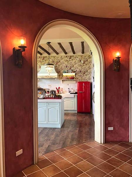 開放式廚房也佈置的非常夢幻,還有超夢幻的SMEG大紅色冰箱