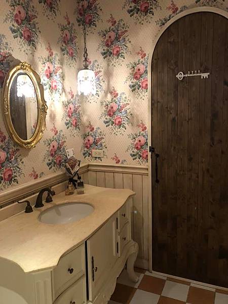 廁所內還是維持著一貫的鄉村風風格,貼了花花的壁紙,