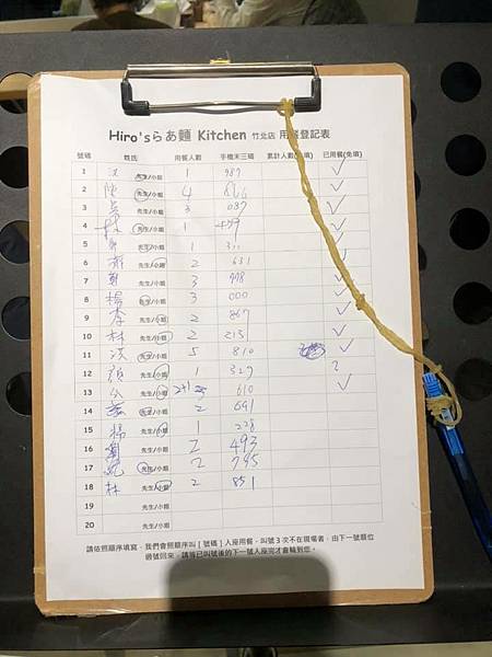 候位單就放在店門口,直接填上姓氏、用餐人數及手機後三碼即可,但是需要在現場候位,因為沒有留下完整的手機號碼,老闆也忙到沒有時間打電話通知候位的客人,店內就只有少少的10個用餐座位,加上拉麵是現點現煮,剛上桌又很燙沒有辦法吃很快,所以候位時間大概需要等半小時以上