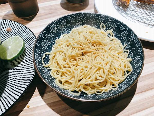 拉麵旁邊也有準備檸檬片,一開始我覺得很奇怪為什麼吃拉麵要加檸檬,不過後來湯越喝越膩之後我就擠了幾滴檸檬,結果湯喝起來真的就沒有這麼膩口了耶,蠻神奇的!我選擇的是粗拉麵,麵條的口感非常棒,Q彈有嚼勁,而且因為湯頭濃郁所以反而不希望麵條吸附太多的湯汁,覺得搭配粗麵非常剛好,拉麵裡面的配料除了溏心蛋之外還有叉燒,不過叉燒表現不太好,吃起來好乾柴,不是很喜歡