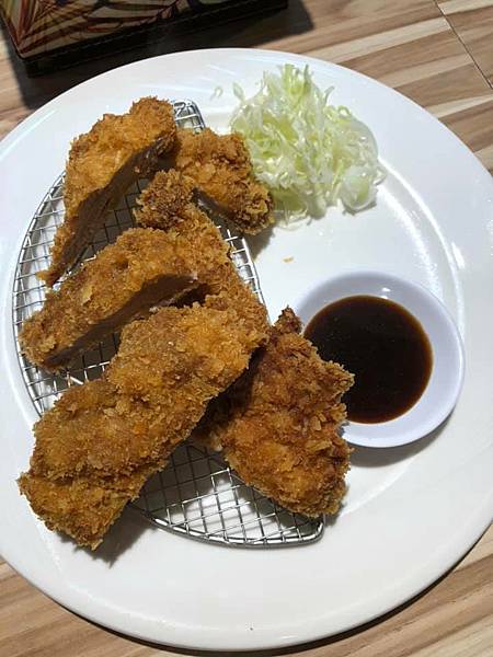 想要吃的炸雞腿排已經賣完了,所以只好點了炸豬排,豬排旁邊的配菜高麗菜絲以及豬排醬如果吃完都還可以再續,不過豬排的表現也普普,有點炸過頭了,豬排吃起來也是乾柴不多汁,裹的麵衣也有點厚重,吃起來不夠清爽,但是下次我會想要再吃看看炸雞腿排歐姆蛋咖哩飯~