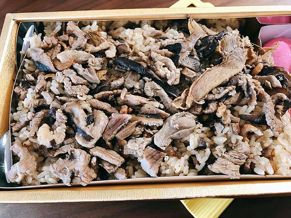 32兩重的油飯拿起來非常有份量,我跟先生吃了兩餐還吃不完一盒,可見油飯份量之多,豐谷的油飯吃起來非常Q彈,我很喜歡他們家的油飯,而且油飯上面的配料也很豐富,就連昂貴的香菇也給的非常豪邁大方,另外還有肉絲以及蝦米