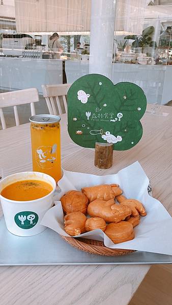 森林食堂的雞蛋糕吃起來不會很甜,可能是為了要給小朋友也可以食用,所以甜度有降低,吃起來是很天然的雞蛋香氣,南瓜濃湯的表現也蠻不錯的,不過氣泡飲料竟然是罐裝的讓我比較失望一點,整體來說這裡是個很適合遛小孩的地方,不過假日人潮洶湧建議如果可以的話選擇平日到訪比較清幽喔~