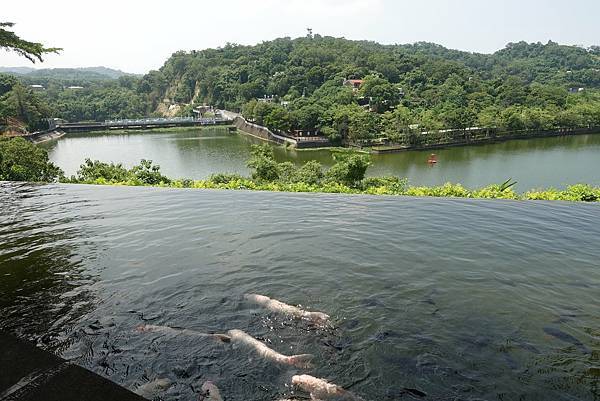 無邊際水池裡面有許多魚兒悠游其中,如果喜歡餵魚的話可以直接跟櫃台購買魚飼料,一包只要20元喔~