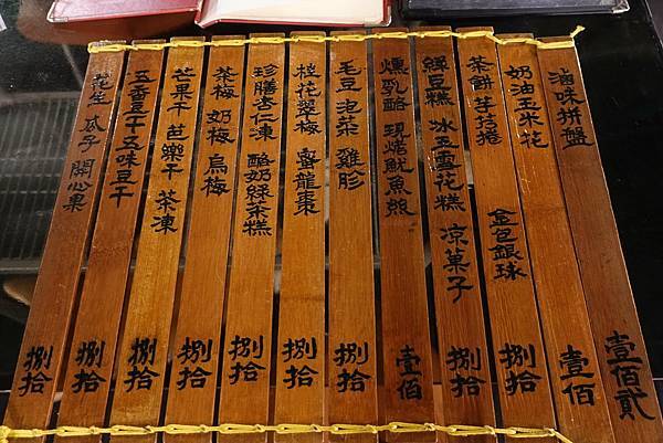阿妹茶樓的菜單也非常有特色,寫在簡牘上的菜單拿起來非常有份量,尤其是特別以國字大寫的價格,看得出來店家非常用心營造茶樓內古樸的氛圍。