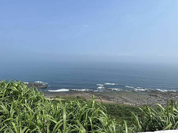 登上觀景台海水爬嶺的美麗景象,太平洋海波寧靜海天連成一線,可惜今天海平面霧氣繚繞,龜山島不是非常清晰。